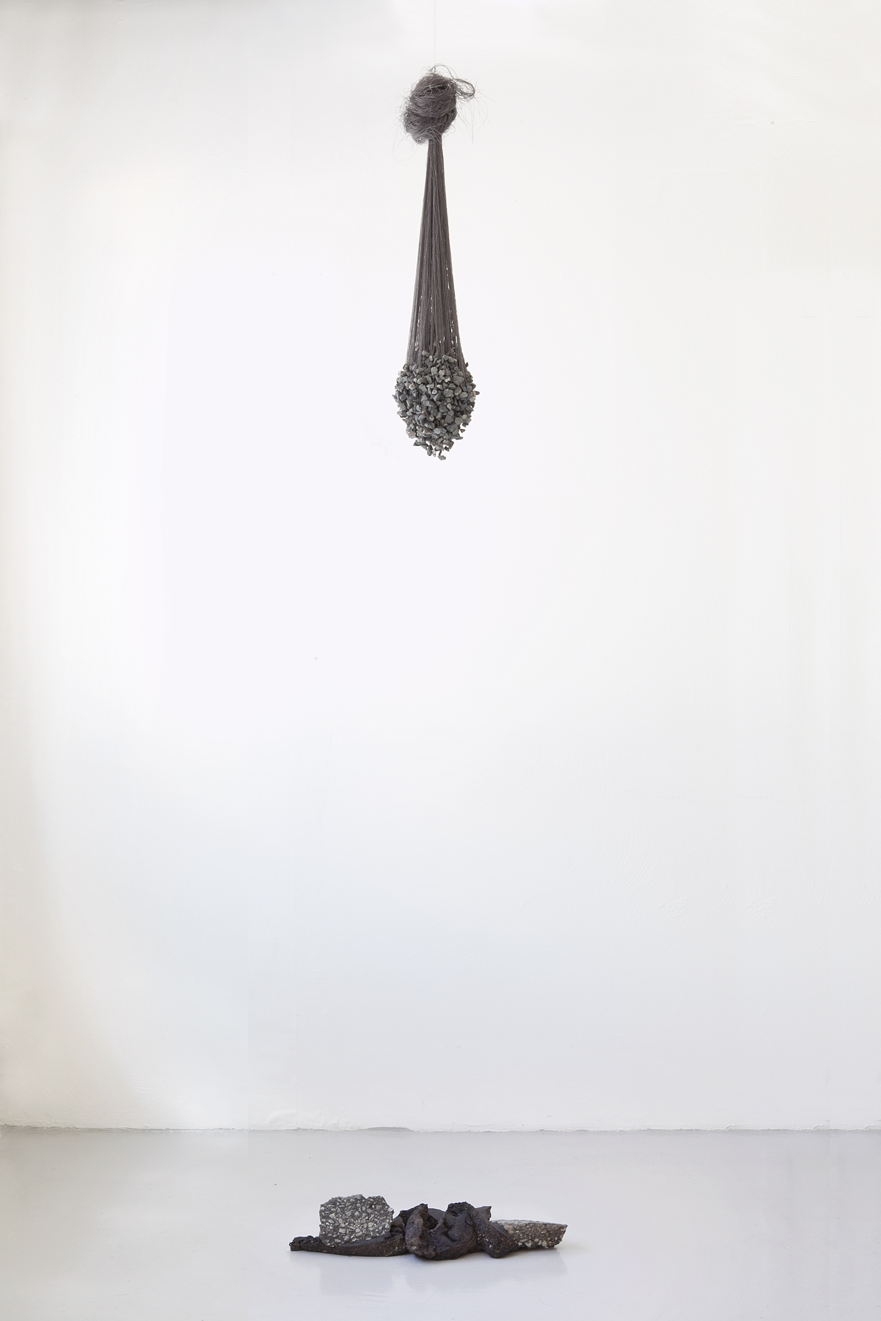 Installation view at TM51, In Possesion of Emotions and a rational Soul, 2015. On the floor: The Sleep. From the ceiling: Nervousness / A Self-reproach.
