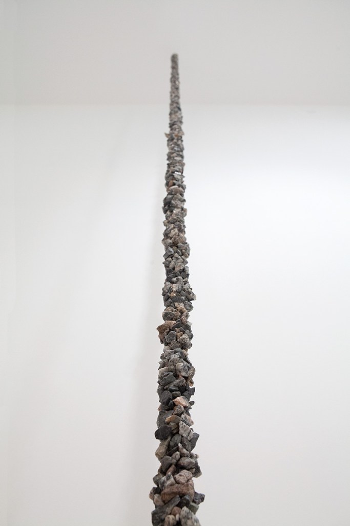 Instalation view, National Museum og Art, Oslo. Diabas, rope and gravel, 2022.