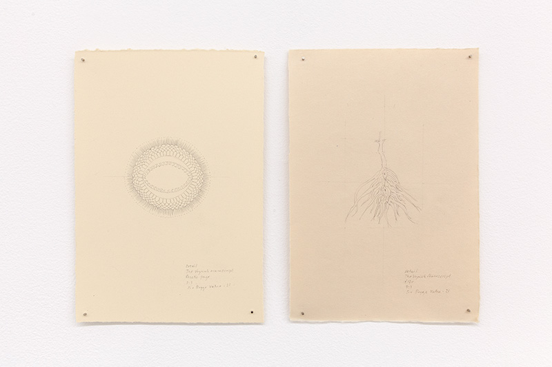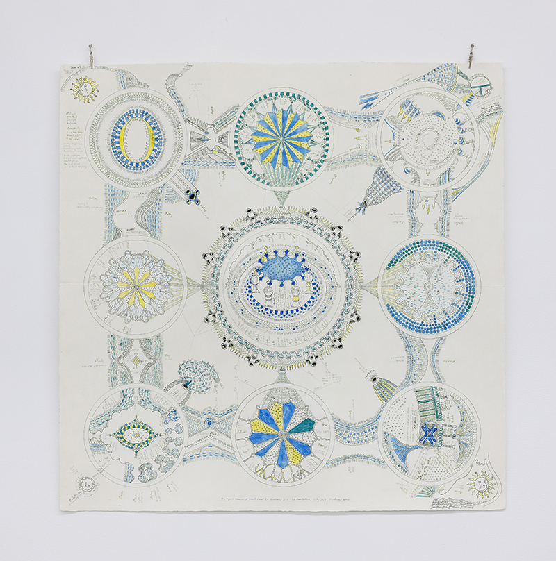 Voynich manuscript studies. Pencil, ink and gouache on paper, 23×16,5 and 95×95 cm, 2023. Photo: Francisco Casale