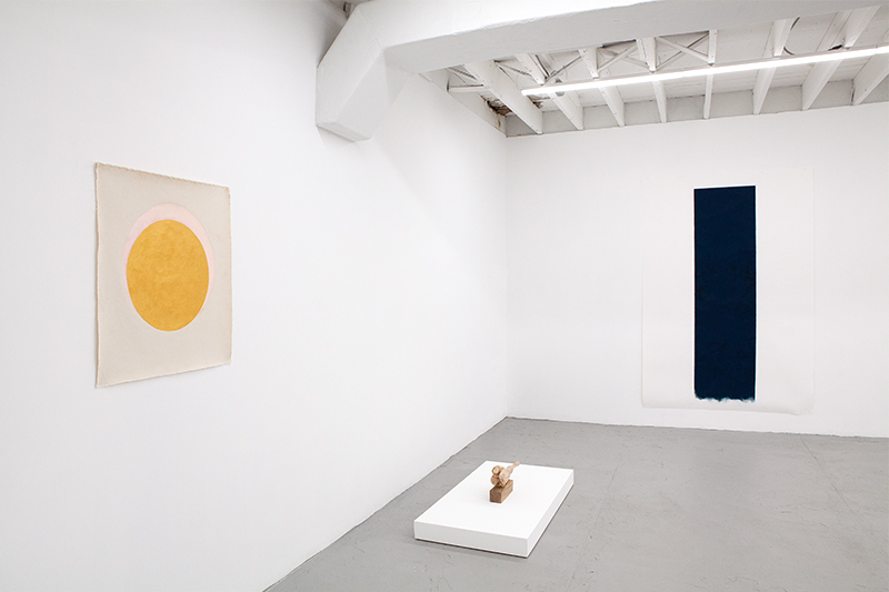 Aanestad ́s continuous investigation of the never-ending shape of the circle is here represented through one painting in shimmering gold on unprimed canvas. Her works on paper, canvas and stone drive our attention to dimensions like volatility and eternity through the inherent materialities like tactility, weight, color, light, reflections, and alternations. Reminding us of arts’ ability to inform a continuous examination of our perceptual awareness of both ourselves and of the world.