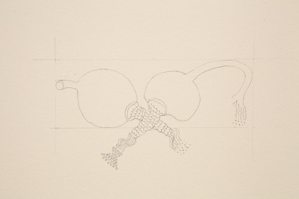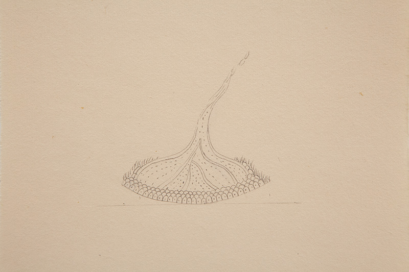 2 of 53 drawings from the series Voynich manuscript studies. Pencil on paper, 23×16,5. 2021-2023.