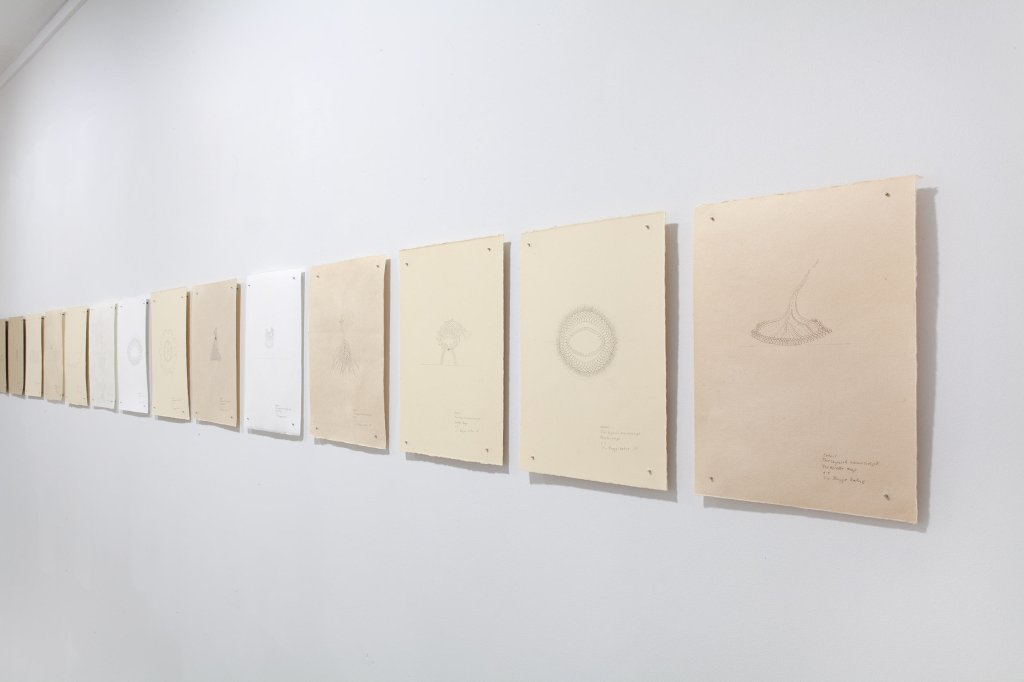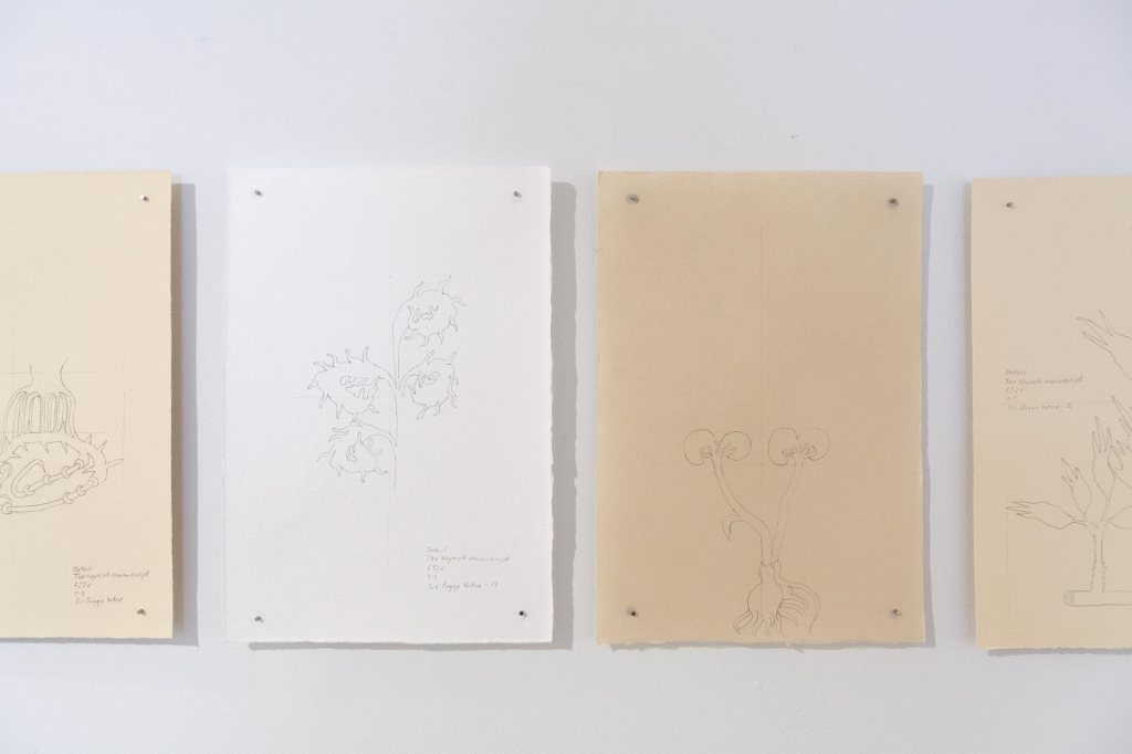 Humming (2018- ). Voynich-studier i 1:1. Blyant på papir, 23,5×16 cm, 2021-2024.